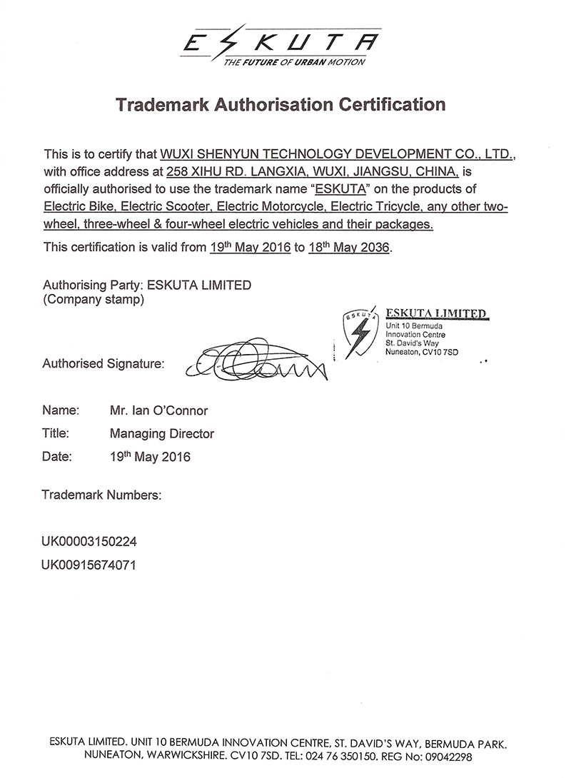 Trademark Authorisation SUNWING Motor Life Owsome! Our customized product for overseas market. Thanks for cusomer’s trust to us through the trademark authorisation. 02/16/2022